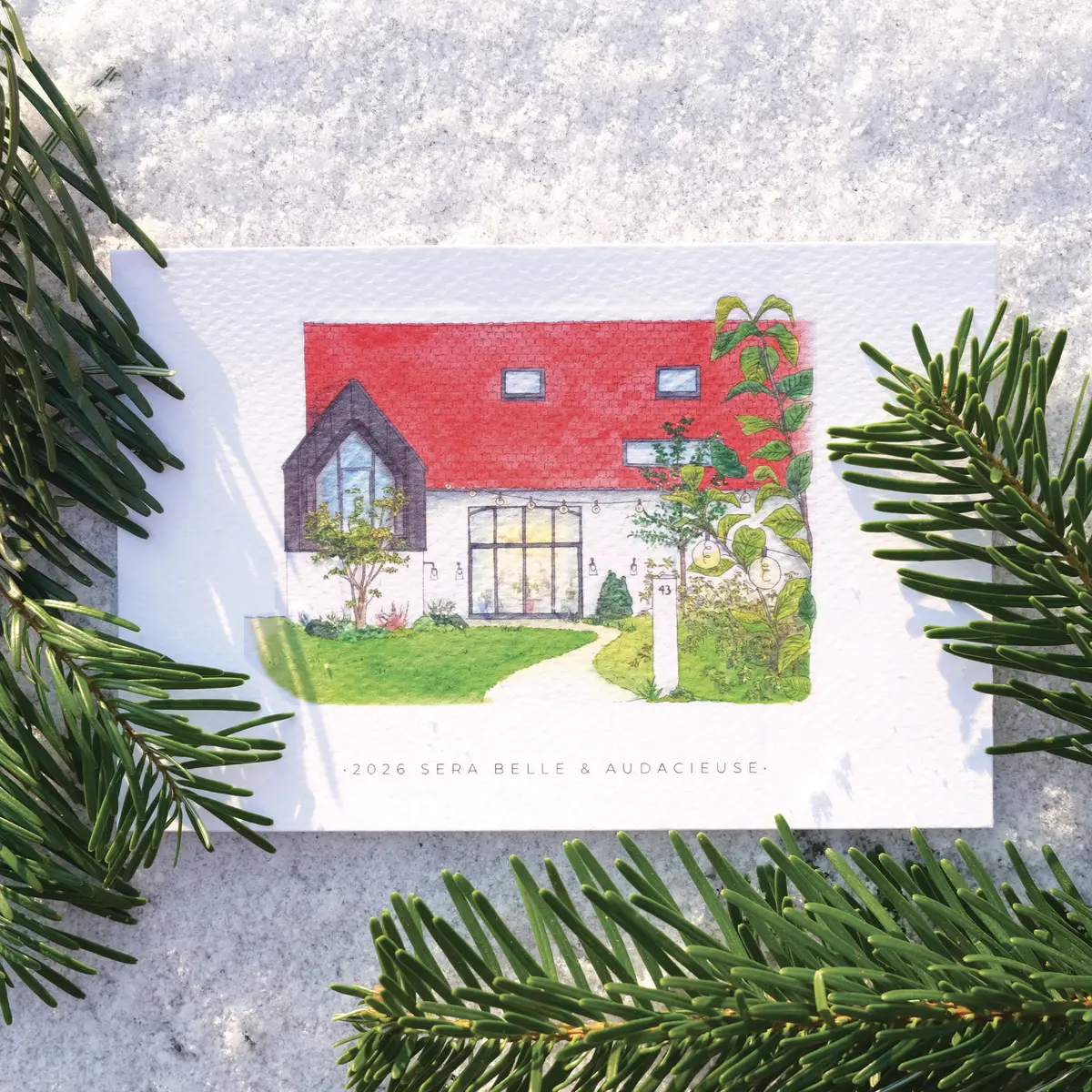 L’illustration se décline sur une carte de voeux pour souhaiter la bonne année 2026 aux collaborateurs de Manon.