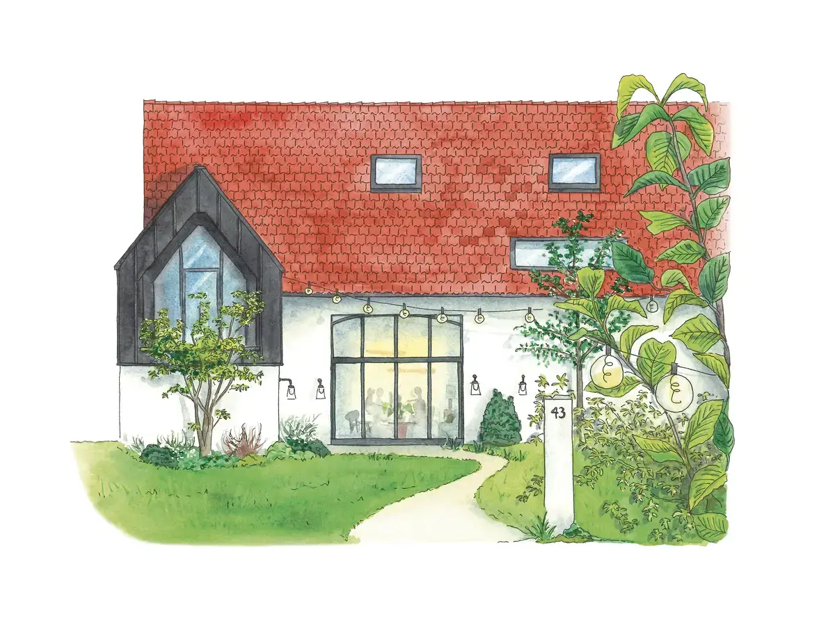 Manon m’a demandé de peindre la façade de sa grange rénovée dans laquelle se trouvent les bureaux de l’entreprise.
